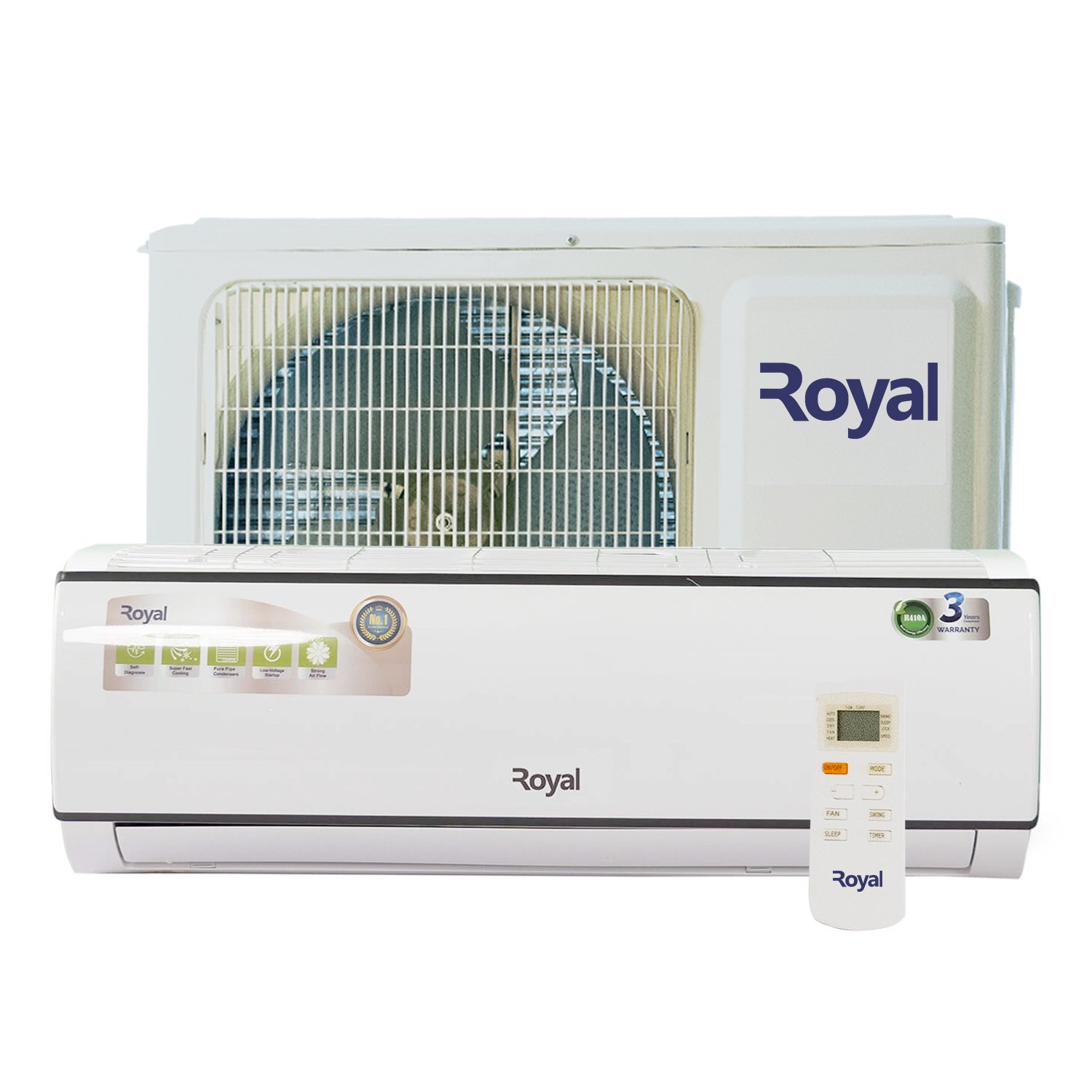It features R410 gas with a Golden Fin Filter and 2-Way drainage. The elegant air conditioner from Royal Electronics comes with a quick cooling feature that immediately sends cool air to every corner of your room within a few minutes of being turned on.